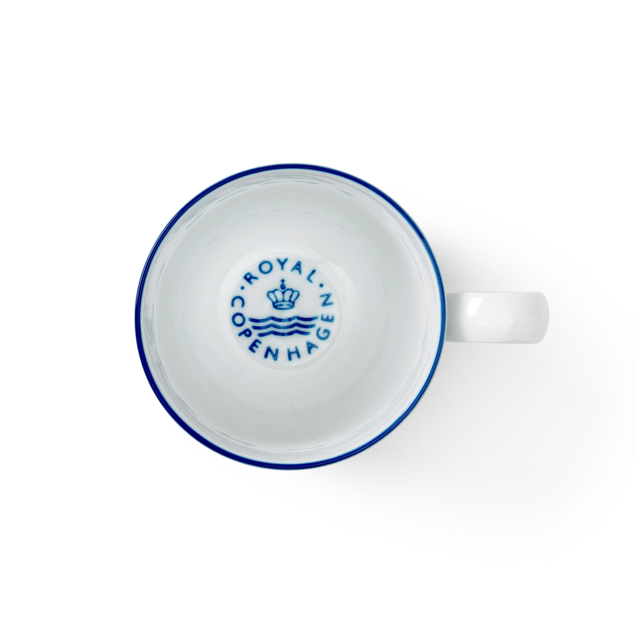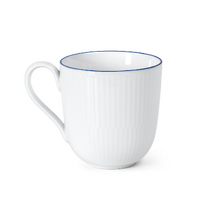 Дизайн чашки воплощает скандинавский стиль: безупречно белый фарфор дополнен тончайшим синим кантом, нанесенным художником вручную по верхнему краю. Фирменный символ короны у основания ручки служит подтверждением подлинности и высокого мастерства датской мануфактуры Royal Copenhagen.