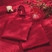 Изготовленная из смеси хлопка и льна, скатерть выполнена в красивом красном цвете и украшена жаккардовым узором, который передаёт дух праздничного сезона.