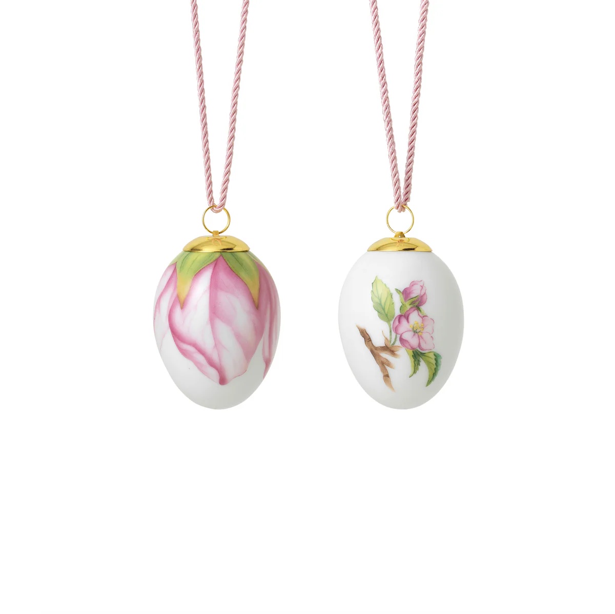 Данная коллекция - это изделия из тонкого фарфора, выполненные в виде подвесок, которые можно повесить на ветки, люстру или пасхальное дерево. Яйца украшены нежной росписью с мотивами цветов и птиц. Это прекрасный весенний сувенир, который можно купить в подарок или для собственной коллекции.