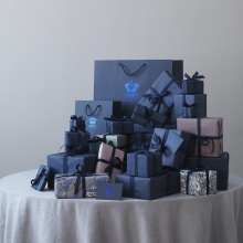 Брендированный темно-синий матовый пакет с синим или золотым логотипом Royal Copenhagen.