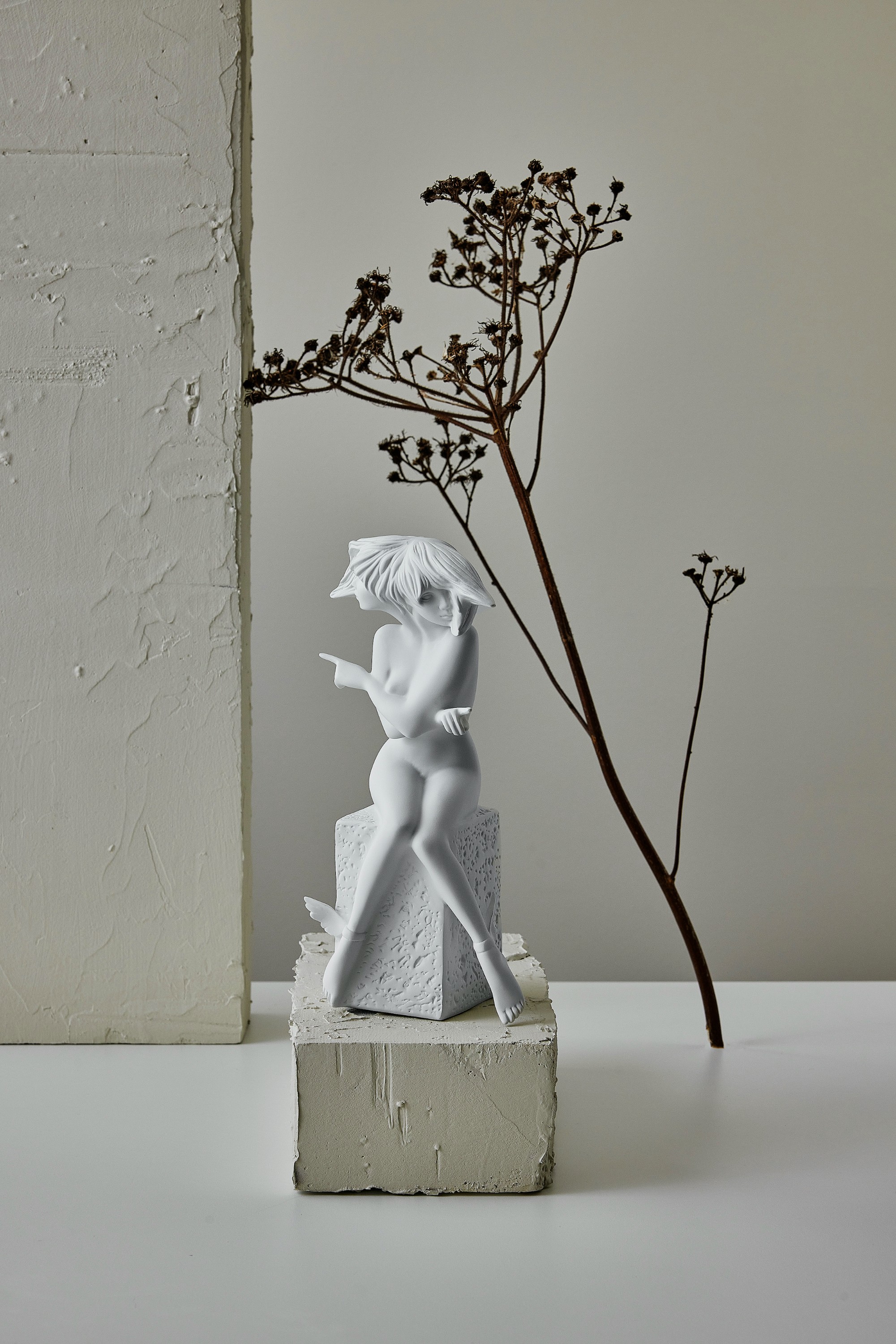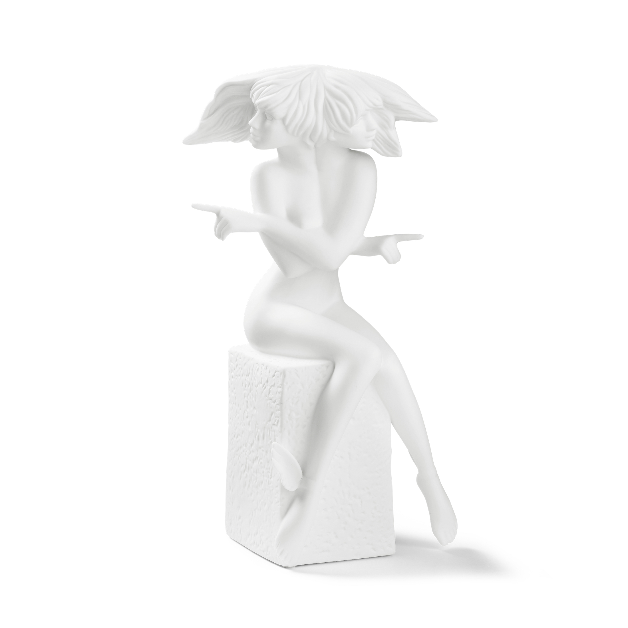 Фигурка выполнена из матового бисквитного фарфора. Его бархатистая текстура лишена бликов, что позволяет сфокусироваться на изящной пластике и чистоте формы. Этот благородный материал делает статуэтку тактильно приятной и визуально статусной.