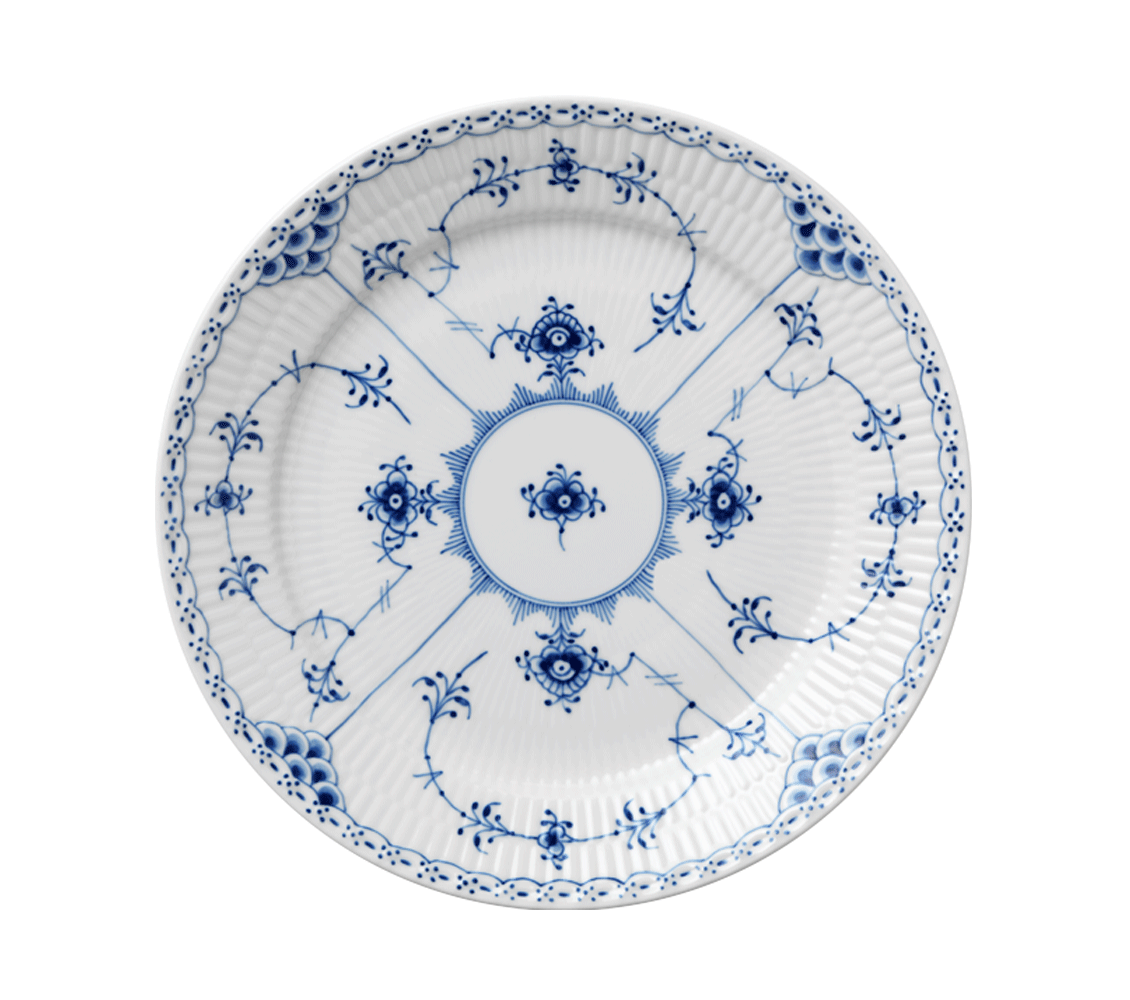 Одна из первых работ художника Арнольда Крога. Лаконичная и одна из самых нарядных «рифленых» серий, богато украшенная голубым орнаментом. Вышла в свет в 1888 году. Как и другие коллекции фарфора Royal Copenhagen конца 18 века, оформлена рисунком под названием «Узор номер 1», наложенным техникой ручной подглазурной росписи.